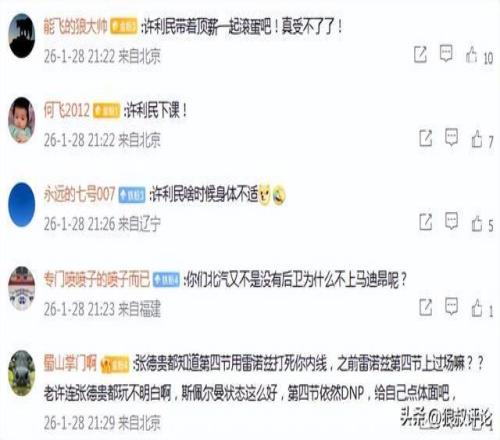 有球迷点评说道:张德贵都知道第四节用雷诺兹打死你内线,之前雷诺兹第四节上过场嘛??老许连张德贵都玩不明白啊,斯佩尔曼状态这么好,第四节依然DNP,给自己点体面吧。