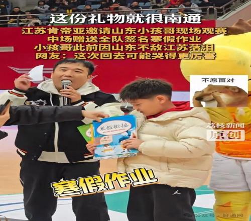 江苏队为小孩哥送上全队签名的寒假作业