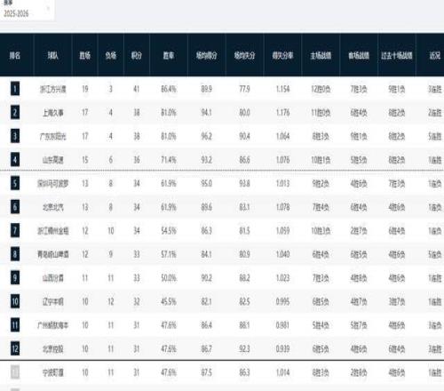 CBA最新排名出炉!广厦第1太稳,山东杀进4强,辽篮重返季后赛区