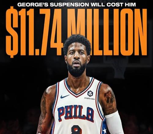 根据薪资专家Bobby Marks计算,25场禁赛,保罗·乔治直接损失高达1174万美元。