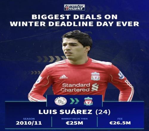 最近德国转会市场盘点了史上冬窗截止日最大交易,苏亚雷斯苏亚雷斯、托雷斯托雷斯、巴洛特利巴洛特利、许尔勒许尔勒、夸德拉多夸德拉多都在这份名单里。几笔交易的数字对比特别直观:有人是“身价更高但成交更便宜”,也有人是“转会费明显压过当时身价”。冬窗截止日出手往往是为了立刻改变局面,钱花得值不值,最后还是要回到转会后的上场时间和产出来看——这5笔里,哪一笔最划算、哪一笔最亏?