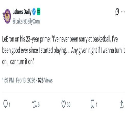 詹姆斯本人在狂刷历史之最的纪录后,赛后谈及自己漫长的巅峰期时霸气发声:“我从未因为选择篮球而后悔,自从打球以来,我一直很出色,只要我想火力全开,就能快速进入状态。”