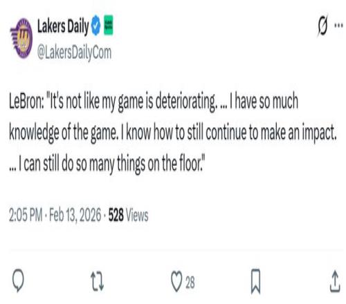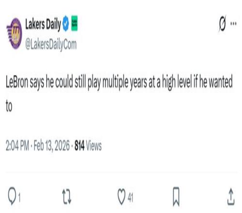 最后詹姆斯坦言只要自己愿意,仍能以高水平状态继续征战多个赛季。