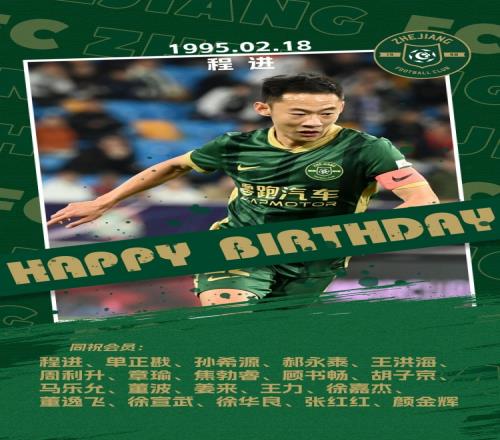 2月18日,程进庆祝他的31岁生日,这时候浙江队不失时机地送上了祝福,顺便也照顾了一下那些同样在今天过生日的俱乐部会员。简直是一个大团圆的场面,大家一起庆祝,谁不想在自己的生日那天得到一份特别的关注呢?