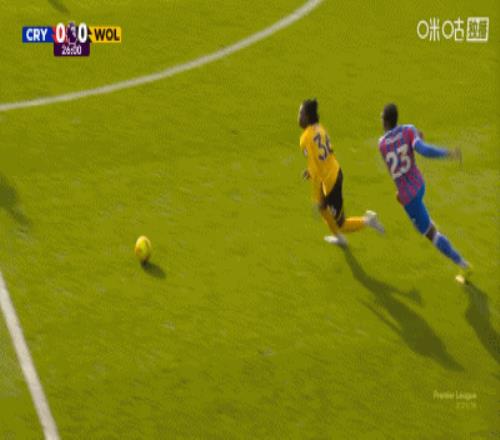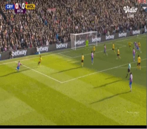 第90分钟,盖桑临近比赛结束破门,水晶宫1-0狼队
