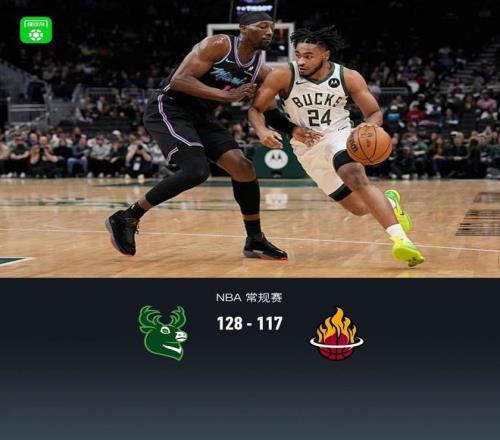 第四节雄鹿小凯文-波特拿下13分,热火诺曼-鲍威尔拿下9分,最终雄鹿128-117战胜热火