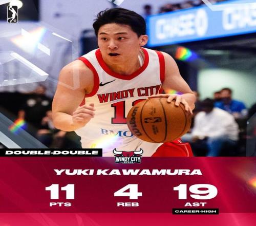 双向合同球员河村勇辉在本赛季G联赛场均可以送出11.3次助攻。