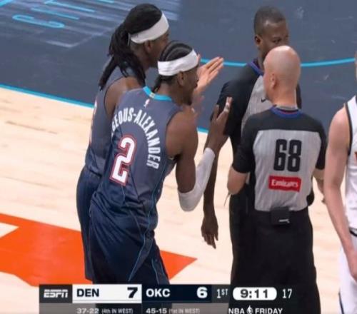 北京时间2月28日,NBA常规赛迎来一场焦点大战,雷霆主场对阵掘金。此前雷霆战绩45胜15负,虽然仍排名西部第一,但马刺一波11连胜过后,差距缩小到只有1.5胜场。而掘金此前战绩为37胜22负,排名西部第四。自从约基奇在1月底复出后,过去一个月时间,掘金整体打得都很挣扎。看一组数据就明白,约基奇整个2月份,场均26分13.7篮板球9.2助攻,数据依旧不错,但两项命中率低至48.1%+33.3%,场均4.4次失误,真实命中率相较于赛季平均水平,下降11%!而本场比赛另一大看点,就是亚历山大和约基奇两位MVP候选人的哨子。