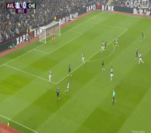 第2分钟,贝利助攻,道格拉斯-路易斯门前巧射破门,维拉1-0切尔西