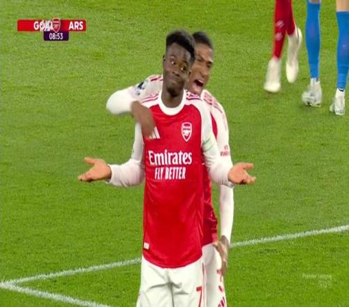 此役客场对阵布莱顿,作为队长首发出战的萨卡在比赛第9分钟破门,帮助阿森纳取得1-0领先。