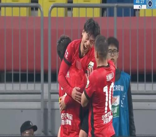 上半场补时阶段,王东升右路传中,费利佩抢点扰乱防守,胡荷韬化身第二中锋,收获进球。