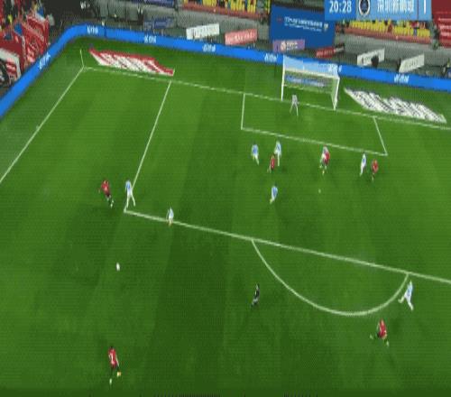 开场只有5分钟,深圳新鹏城后场长传,蓉城两名后卫跑到一起,阿代米假动作晃开防守,打进了本赛季中超的第一个进球。