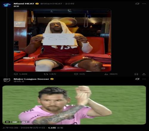 比赛结束后,迈阿密热火官方社交媒体晒出了阿德巴约手举“83”字样的庆祝照,美国职业足球大联盟(MLS)官推随即评论,配上迈阿密国际球星梅西鼓掌致意的动图,以此向阿德巴约送上祝贺。