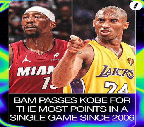 4、本场比赛前三节,阿德巴约成功砍下62分,追平科比;