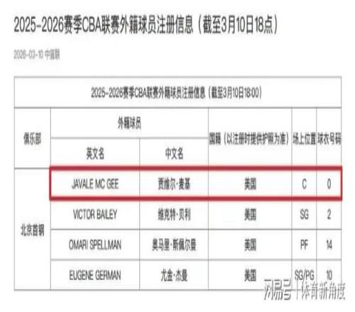 在万众瞩目的时刻,麦基成功斩获CBA“上岗通行证”,正式获得官方认证,成为北京队的一员猛将。就在本赛季第二阶段战火即将重燃之际,北京队在最后时刻为麦基完成了注册手续,这一举动意味着,从即刻起,麦基便拥有了披挂上阵、征战CBA的资格。球迷们翘首以盼,有望在本周三北京队主场迎战联盟排名末位的四川队时,目睹麦基的CBA首秀风采。