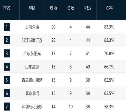 广东和山东排在第三和第四。广东目前还是内线的问题,现在已经三连败了。山东这轮拿下江苏,巩固住了第四的位置。