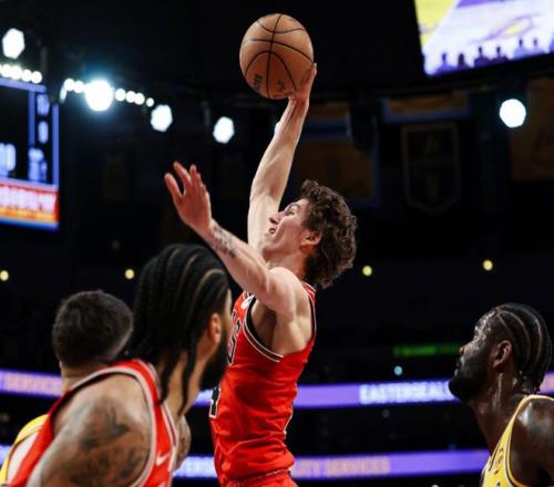 老詹冲击暴扣,随后抢断助东契奇轰三分。里夫斯和东契奇轮流上篮打进,八村塁也续上三分球,湖人拉开两位数分差。中段詹姆斯躲闪拉开上篮+抢断反击喂饼里夫斯,东契奇+里夫斯连中三分,詹姆斯反击重扣,湖人最多领先22分!但从后半段起,湖人攻防转换太慢,内线顶不住冲击,对公牛持球人压迫不够,被公牛连续追分,全靠东契奇撑着。三节打完,湖人108-98领先。决战第四节,肯纳德关键三分命中后,基迪联合特雷琼斯一路追到只差7分。里夫斯又中超远三分球稳定节奏,此后里夫斯拜佛跳投再中。