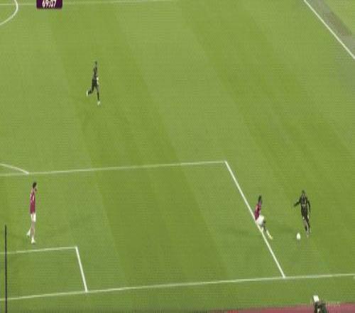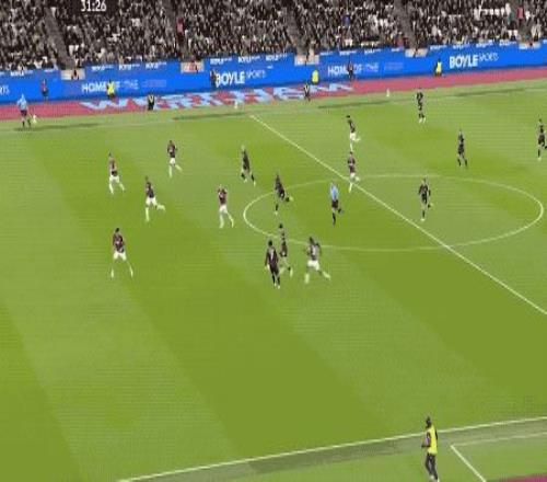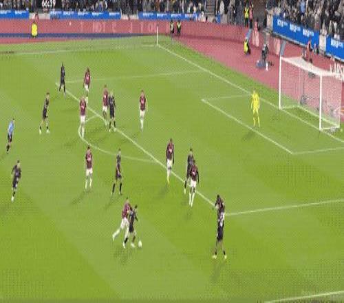 第5分钟,努里在左路上演精彩的过人秀,西汉姆联球员前仆后继,完成拦截。