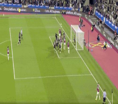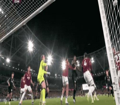 第35分钟,西汉姆联的第一次射门就扳平比分,多纳鲁马出击失误,马夫罗帕诺斯头球破门。