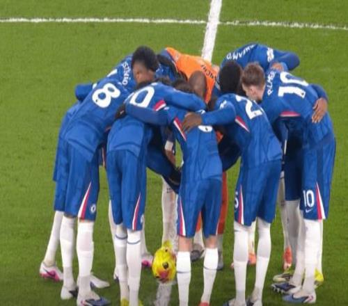 比赛开始前,11名球员在球场上围成一圈打气并不罕见,许多球队都会这样做,但最近切尔西开始尝试一种新的做法:每45分钟开始时,在不同的位置进行一次