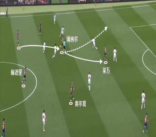 通过动图可以看得更加清楚,莱万接球,博纳尔前插,对手都没想到他会这样移动,所以博纳尔被放空了。