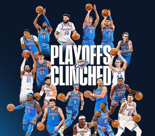 此役过后,雷霆队悄悄取得9连胜,战绩来到54胜15负,稳居西部第1位。同时,雷霆队领先西部第7的太阳队(39胜30负)多达15个胜场。在常规赛还剩13场的情况下,太阳队在理论上已经不可能追上雷霆队。也就是说,雷霆队提前13场比赛锁定季后赛,他们是本赛季联盟第一支锁定季后赛的队伍,也是连续两年NBA首支锁定季后赛的队伍。赛后,雷霆二当家更新社媒并写道:除了精心打扮在场边加油,我啥都还没干,伙计们,干得漂亮!