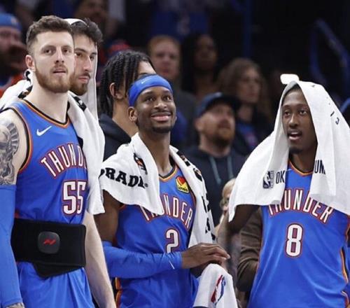 从领先18分到落后7分再到5分险胜,雷霆队有惊无险带走胜利,班凯罗和SGA上演神仙打架。班凯罗出战36分钟,21投12中(三分球6中3),独砍32分+10篮板+5助攻。SGA出战35分钟,27投14中(三分球5中3),罚球11中9,爆砍40分+5篮板+2助攻+4抢断。据NBA官网数据统计,这是SGA连续129场比赛砍下20+,刷新自己保持的NBA历史纪录。