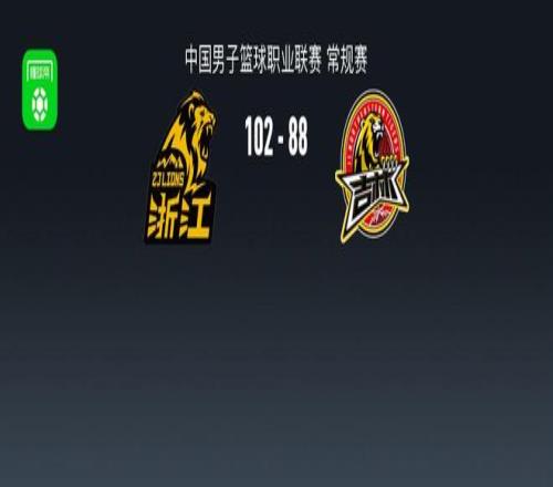 第四节广厦雷琼-塔克拿下12分,吉林达拉斯-摩尔拿下7分,最终广厦102-88战胜吉林
