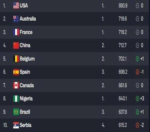 其中,世界排名前三的美国、澳大利亚、法国,加上德国,组成第一档位。