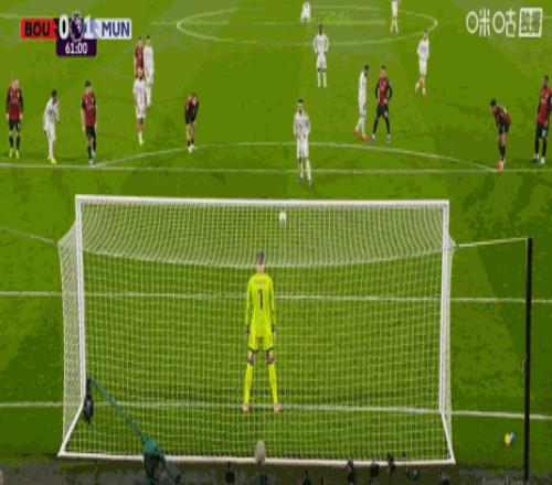 第61分钟,库尼亚造点,B费主罚命中,曼联1-0
