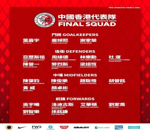 北京时间3月20日,中国香港足总公布了中国香港代表队3月大名单,其中陈晋一领衔中超、中甲9将,安永佳伤缺。三月,中国香港代表队将在友谊赛与尼泊尔交手,之后将在亚洲杯预选赛对阵印度。