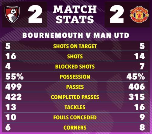朱尼尔·皮鲁皮将点球罚入,帮助伯恩茅斯2-2再次扳平曼联。少打一人的红魔只好稍微回收,确保能带走一分,这场「魔樱大战」最终再次以平局结束。