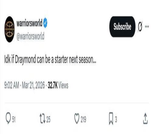 面对追梦这样的表现,勇士媒体warriorsworld赛后都不禁发问:“我不知道,追梦下个赛季是否还会首发。”