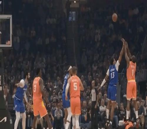 第二节才是他的表演时间。连续两记标志性的后撤步三分,直接打停魔术。半场最后一攻,他面对状元班凯罗,弧顶持球佯突后撤,拔起就射,球进哨响,完成“3+1”。班凯罗站在原地摇头,球迷几乎掀翻屋顶。