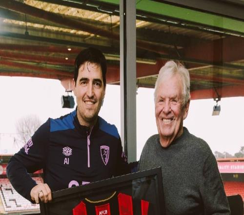 执教100场英超里程碑,伯恩茅斯主席为伊劳拉送上纪念球衣