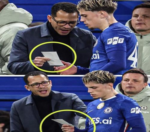罗塞尼尔写战术纸条交给球员,加纳乔阅读纸条后似乎有些不解