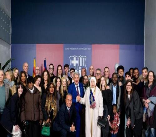 世体报道拉波尔塔本届主席卸任日:温情满满,与球员家属合影