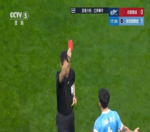 1黄变1红金洋洋67分钟染黄,但转播镜头显示其红牌罚下