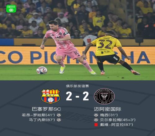 梅西攻破巴塞罗那SC球门,1球1助助迈阿密国际战平厄瓜多尔劲旅