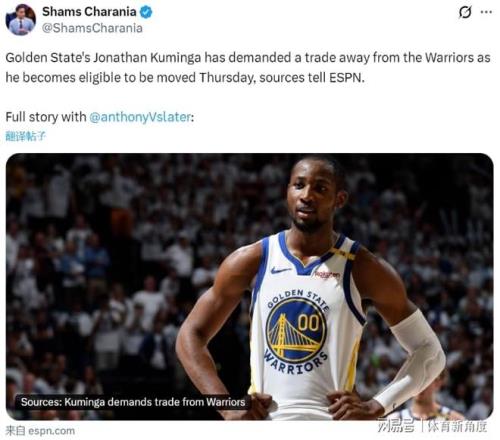据知名记者Sam Amick透露,勇士队早已将库明加置于交易货架之上,且这一状态已持续良久,然而,市场对此反应冷淡,几乎无人问津……Sam Amick进一步指出,尽管库明加与主教练科尔之间的关系已降至冰点,但随着巴特勒的意外受伤,库明加的未来走向陡生变数。他究竟会勇士,暂时顶勒的位置?还是会被勇士迅速打包交易,这无疑成为了一个亟待解答的谜题。